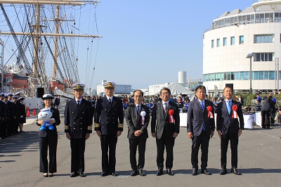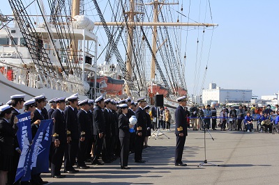 入港日の11月7日には入港歓迎式典が開催され、日本丸の乗組員及び実習生が出席をしました。