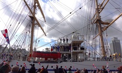 JMETS練習船「日本丸」、神戸港からシンガポールに向け出港