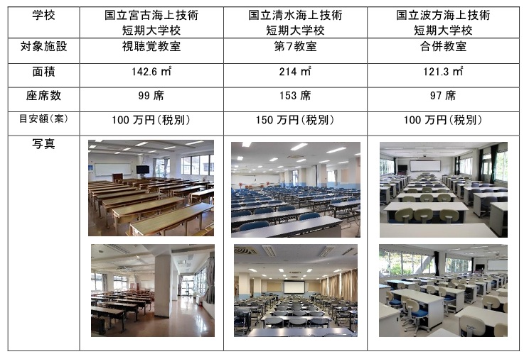 対象施設:JMETS海上技術短期大学校・海技大学校の教室