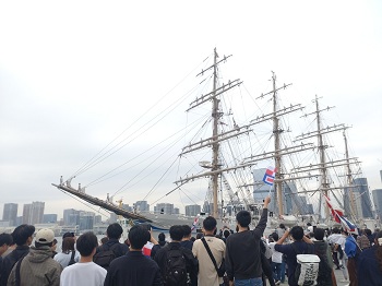 令和8年4月5日(日)、独立行政法人海技教育機構(JMETS)が運航する練習船「海王丸」が、東京港からリッチモンド(カナダ)に向けて遠洋航海に出港しました。